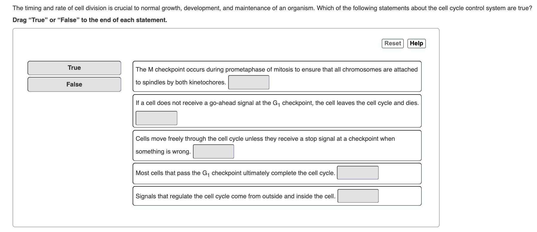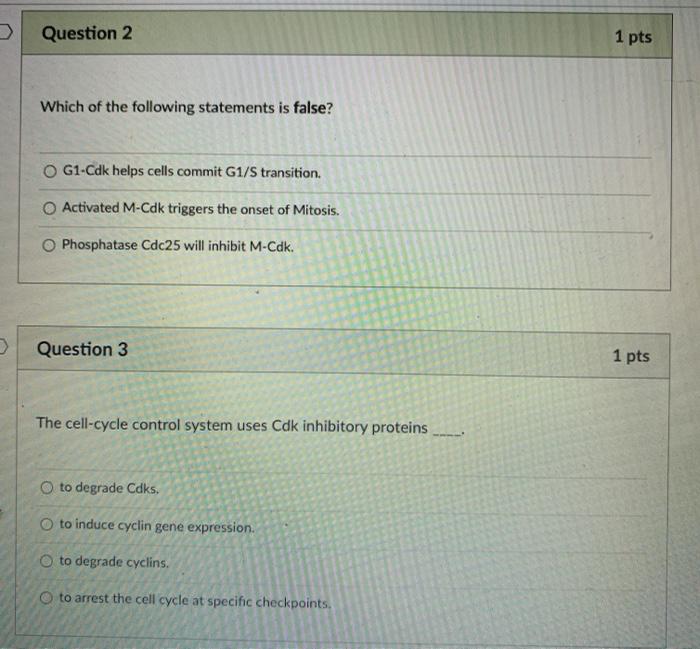 Which of the following statements regarding the cell cycle control system is false. Which of the following statements regarding the cell-cycle control system is falsePossible AnswersThe cell-cycle control system operates independently of the growth factorsThe cell-cycle control system receives messages from outside the cell that influence cell divisionThe cell-cycle control system is influenced by. 1 the cell cycle control system operates independently of the growth factors. Which of the following statements regarding the cell-cycle control system is false. Which of the following statements regarding the cell cycle control system is false. Which of the following statements about protein signals involved in the control of the cell cycle shown is false. C Cell division ensures the continuity of life from generation to generation.