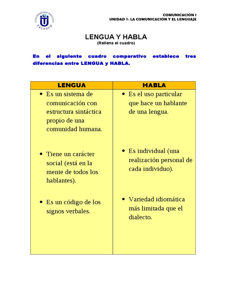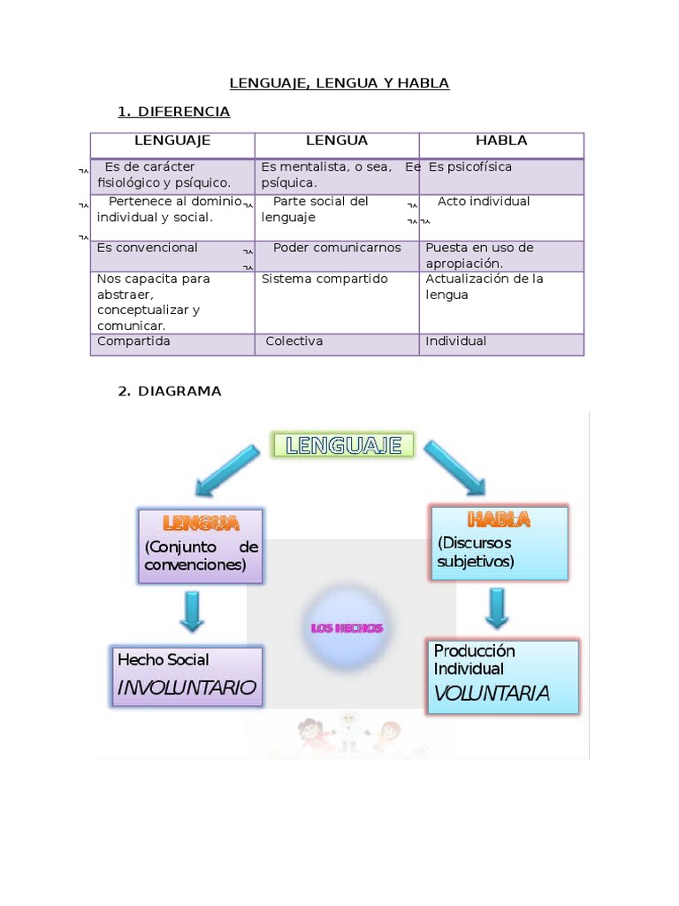 Es el acto individual es la utilizacion que cada individuo hace de cada lengua. 3 diferencias de lengua y lenguaje. Diferencias de Lengua y habla.